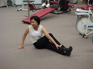 c) For a maximum stretch, keep back straight and twist as far as you can. |