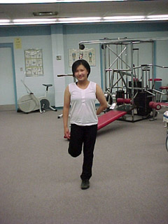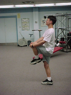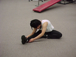b) Bend at your waist and reach as far as you can go. | b) Use your left hand to hold onto your right ankle. For balance, hold out right hand. |