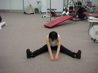 c) For maximum stretch, try to reach until your chest touches your leg without bending your head. | c) For maximum stretch, stretch your legs are far as possible and go as low as possible. |