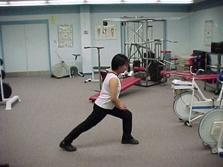 a) sit with both legs spread out and opened. | a) stand up with your left knee slightly bent and your right leg bent behind you. |