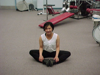 c) For maximum stretch, try to lift knee against your chest. | c) For maximum stretch, bring soles towards you and try to keep knees on the floor. |